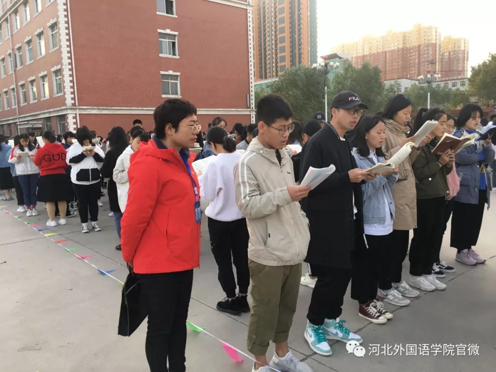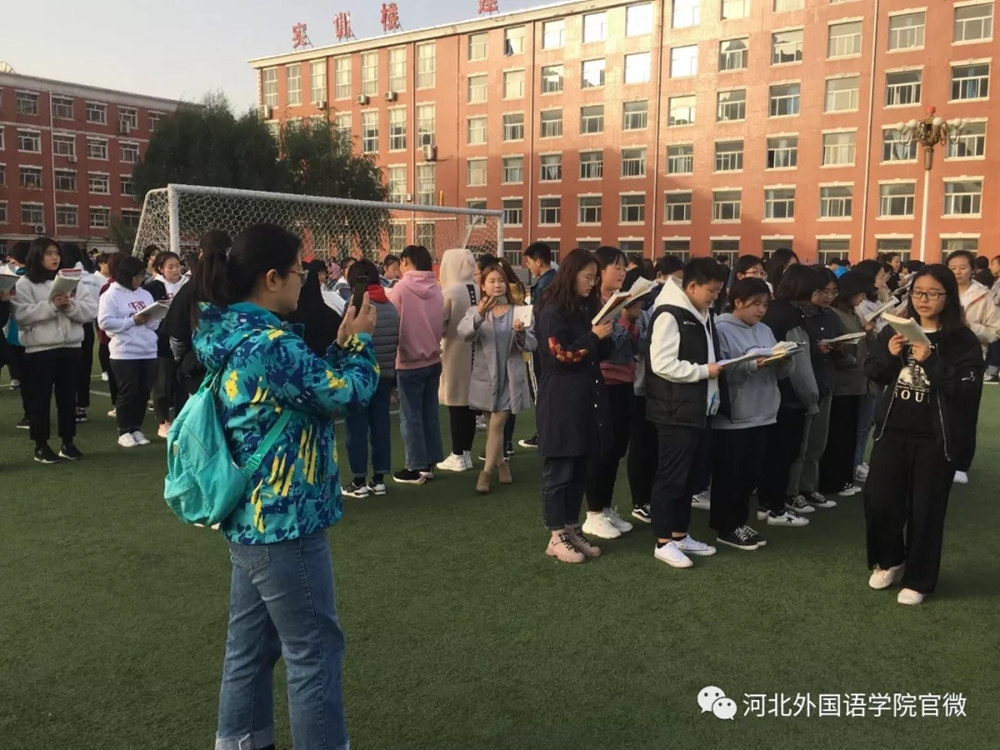 一位前来参观的高中英语教师表示:听说过河北外国语学院的“西点”,但是没想到会这么壮观!几万名同学同时在学校的各个角落朗读外语,还有专门的外语教师进行现场发音指导,这场面太震撼了!