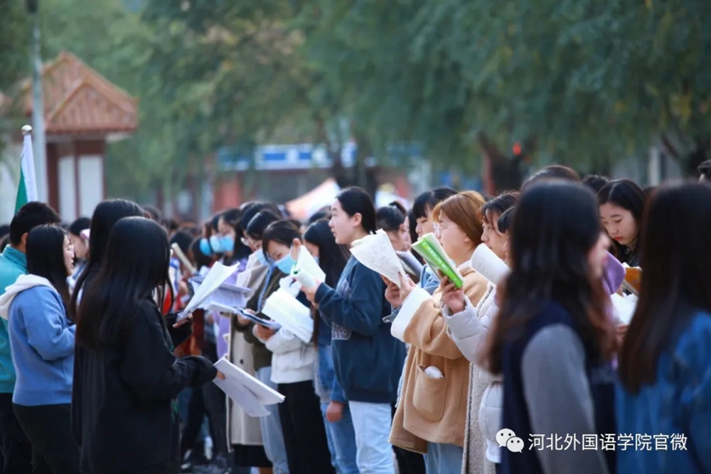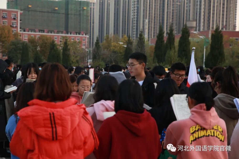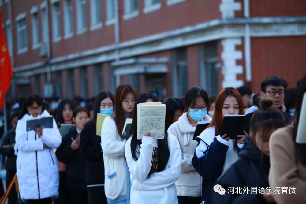 一位前来参观的高中英语教师表示:听说过河北外国语学院的“西点”,但是没想到会这么壮观!几万名同学同时在学校的各个角落朗读外语,还有专门的外语教师进行现场发音指导,这场面太震撼了!