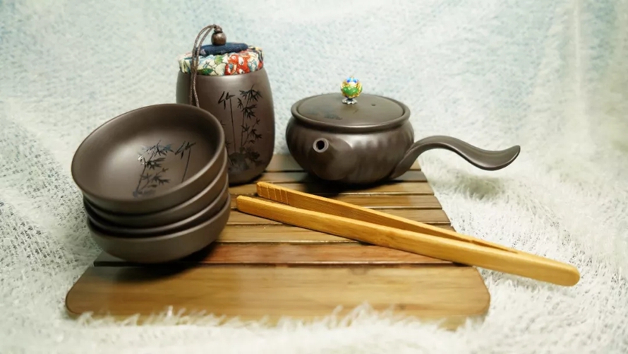 孙校长为每位老师准备的定制版精雕紫砂茶具