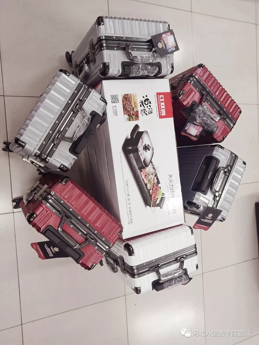 孙校长给老师们发放的旅行箱或烤涮一体锅,让老师们快乐旅行图片