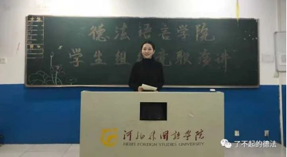 获得国奖的我不骄不躁,我说:我获得这份荣誉,想说的感谢有太多:感谢河北外国语学院给我这个接受组织能力和领导能力的平台;感谢一路上给我鼓励和指导的孙校长;感谢所有领导、老师们对我的精心培养;感谢同学和舍友对我的帮助和理解。我知道,荣誉,既是终点,也是起点。国奖,既是对我之前学习、工作的认可,又是对我之后行为的考验。我一定不负众望,为这份荣誉代言!