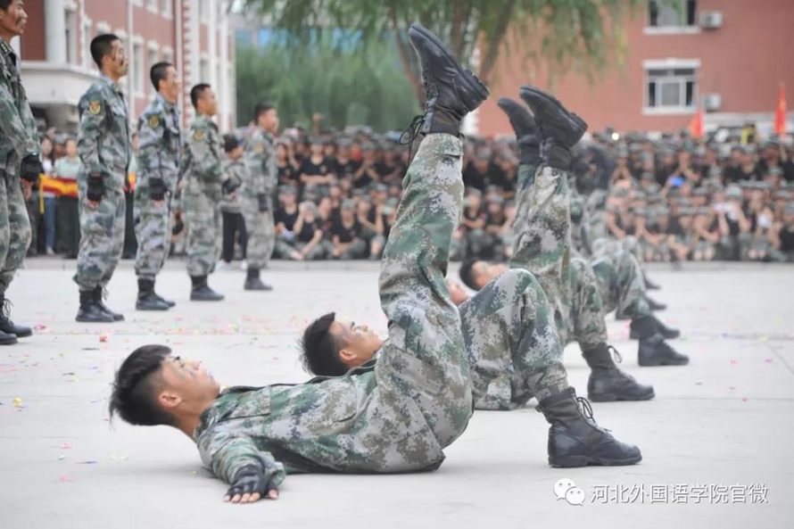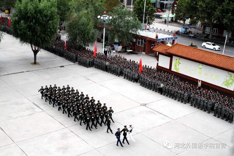 河北外国语学院国旗护卫队2008年成立,2010年国护队员开始作为军训教官训练新生,他们曾为20多所初中、高中带军训,获得135面锦旗,2700余册证书,连续获得学校“精神文明奖”、“优秀组织奖”、“优秀社团组织”、“特殊贡献奖”等荣誉。在每一次的军训中,河北外国语学院国旗护卫队队员都认真对待,他们深知这是给学生们上的开学第一课,需要通过严格的训练来激发学生爱国热情,培养艰苦奋斗、刻苦耐劳的坚强毅力和集体主义精神。每一次军训活动,他们都获得了所训学生所在学校领导、老师以及校长的高度认可和支持。