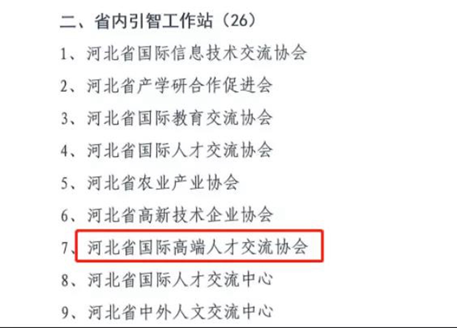 基于河北省国际高端人才交流协会在引智工作做成的初步成绩,2021年被河北省外国专家局认定为省级引智工作站。