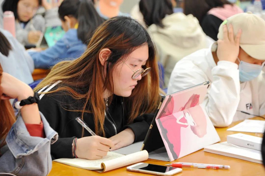 “据我们检查统计,今天全校15个二级学院中有13个学院的同学到课率达到100%,剩下的2个学院到课率也达到了99.6%以上,刷新了河北外国语学院开学第一天到课率记录。”教务处负责检查教学情况的老师说。