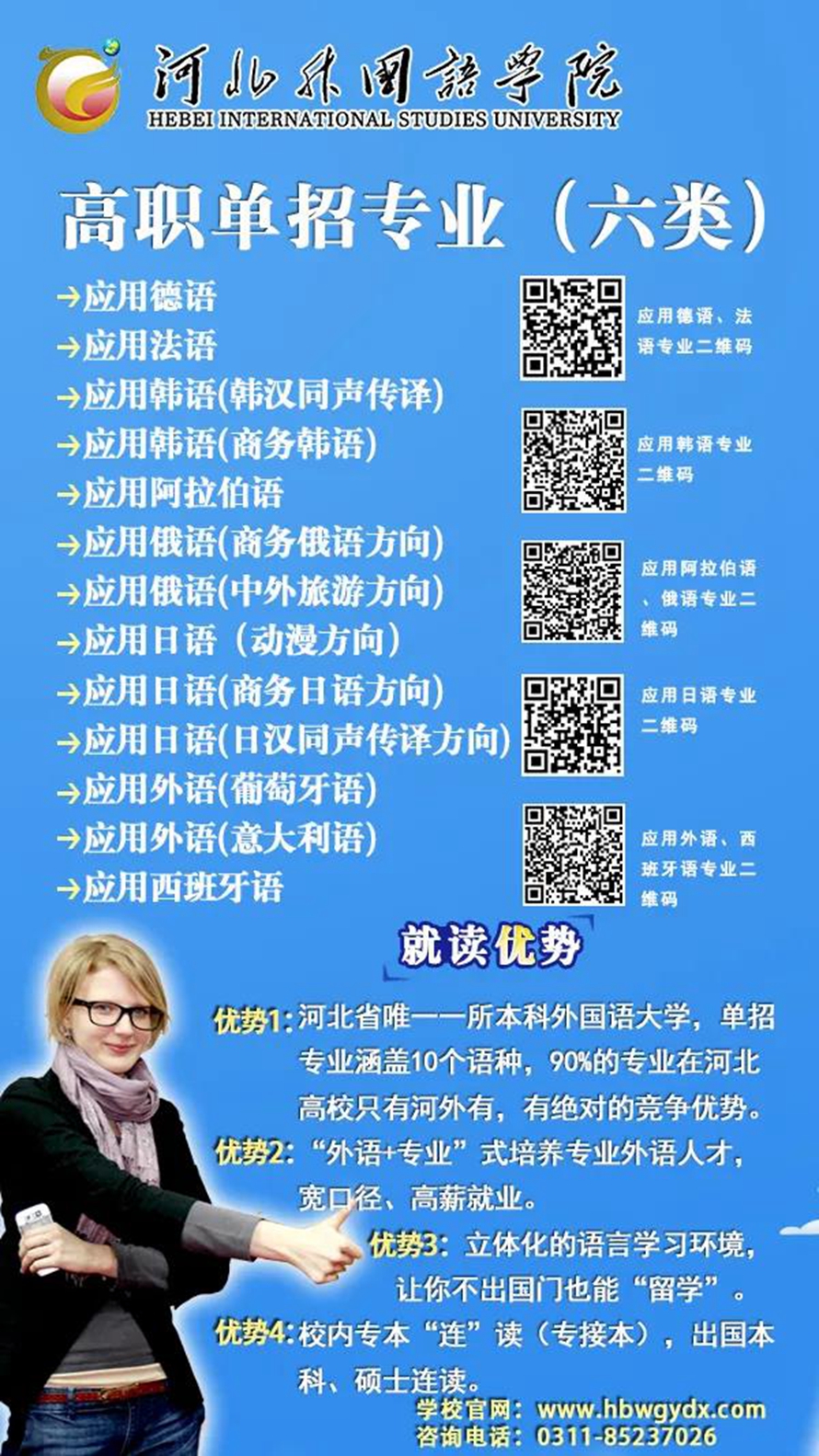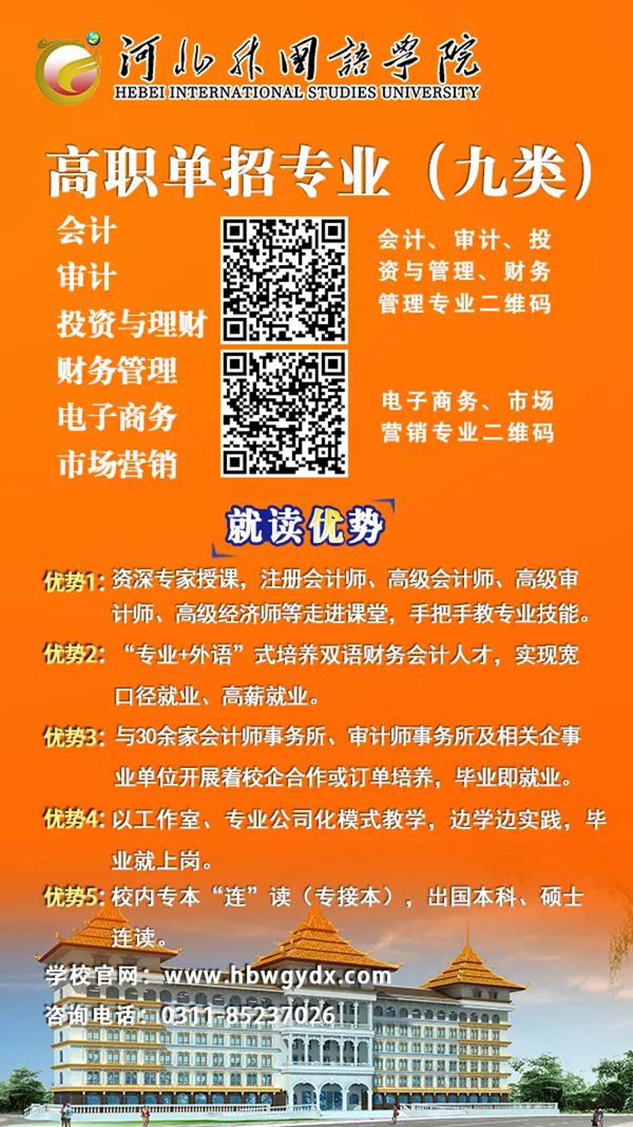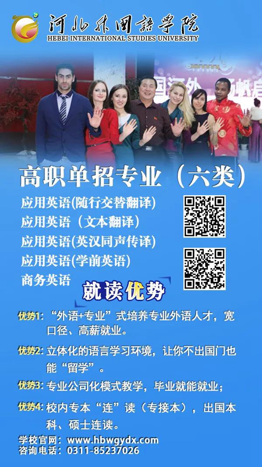 全了,河北外国语学院高职单招专业类及就读优势,喜欢请拿走!