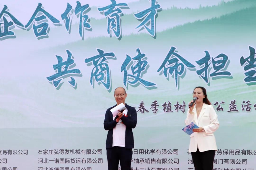 河北外国语学院副校长陈乐音代表学校全体师生向在场所有出席此次活动的企业代表表示感谢,并为大家讲解了本次春季植树造林活动的具体实施方案及意义。