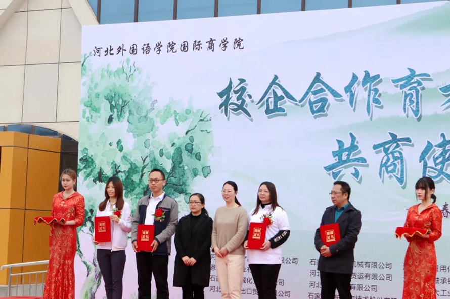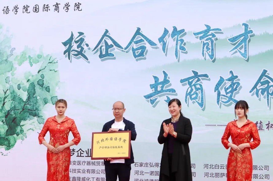 国际商学院行政院长刘东霞为恩典科技实业有限公司董事长苏勇授牌河北外国语学院产学研实习实践基地,从此拉开校企合作序幕,为双方未来实现双赢奠定了坚实的基础。
