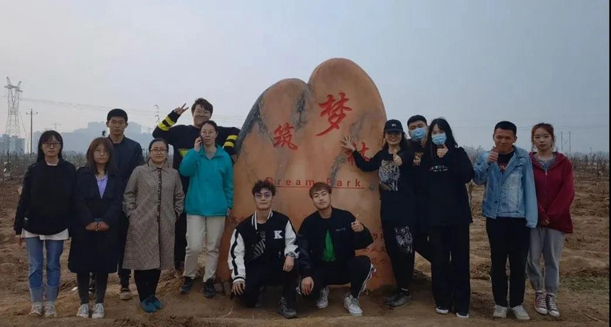 忙碌了一天的国际商学院师生与筑梦林一起合影留念