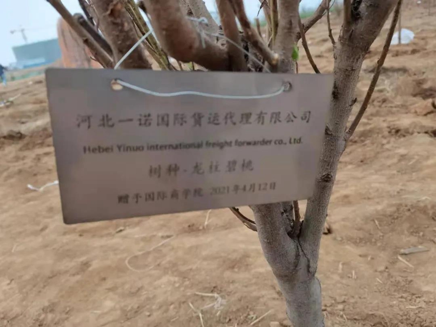 2021年4月12日,河北外国语学院“校企合作育才,共商责任担当”春季植树造林主题公益活动在新校区举办。出席活动的领导有河北外国语学院副校长陈乐音、河外国际商学院国际化行政院长刘东霞、教学院长姚佳。