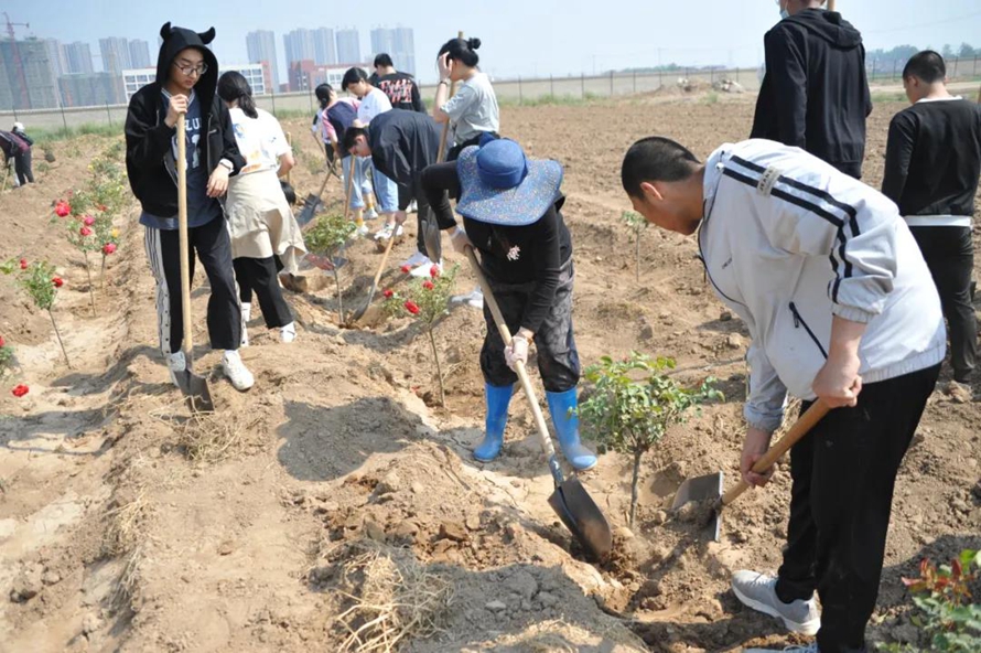 2021年5月3日上午,河北外国语学院与乐达教育集团共同举办“千亩秀林共育英才”工程主题活动。乐达教育集团向我校捐赠了500棵月季树,并组织50余名师生,在新校区共同植下“艺术林”。