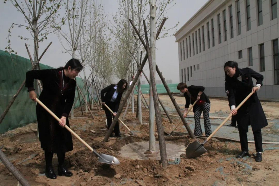 为完善绿化建设,给全校师生提供舒适的休闲、学习环境,在4月份、五一期间,孙校长不辞辛苦地几次驱车千里,亲自到家乡承德挑选了有特殊意义的树苗,其中包括黄金柳树20000棵,松树(油松)22000棵,云杉10400棵,作为校园主要绿植景观,种于新校区。