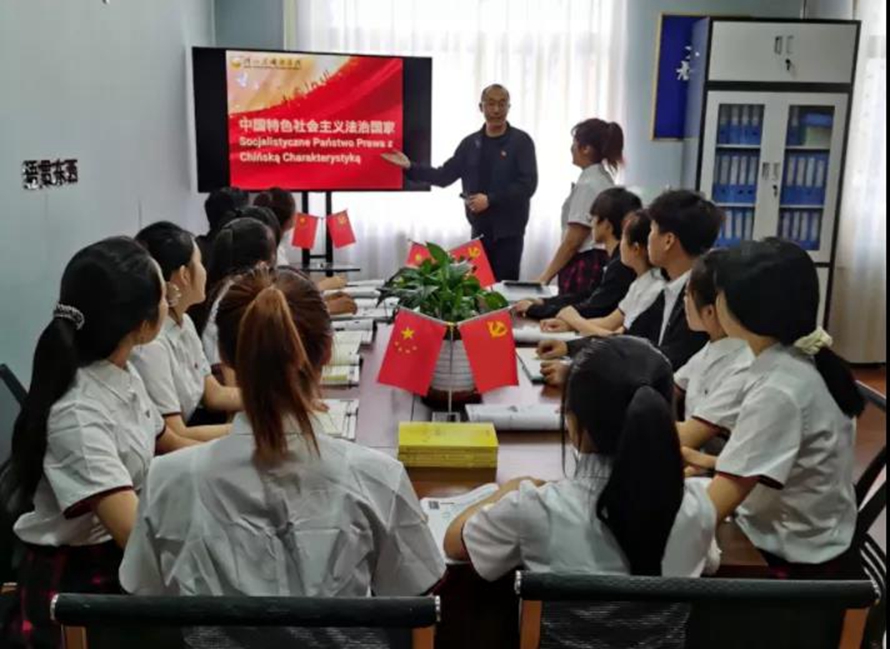 河北外国语学院所有的工作,都没有离开党的领导。第一,董事长、校长是党员,第二,河北外国语学院在河北省民办高校中是第一个成立党委的民办大学。学校党的工作都是化有形为无形,化口头说为行动做,把学校的要求和党的要求相统一。做任何事情,先有了统一的认识,才有统一的思想,才能有统一的行动,最后才能有升华的精神。河北外国语学院很多事都是对着党章做的,党的工作是河北外国语学院各项工作的底色。