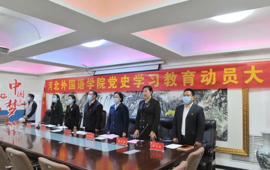 河北外国语学院董事长、校长孙建忠院士,是一名有着34年党龄的老党员,他提出:“以党建促校建,以党建带校建,以学党史炼精神。”河北外国语学院在全国范围内首次将学习习近平新时代中国特色社会主义思想纳入思政课程体系,以最新出版的《习近平谈治国理政》(三卷)为教材,根据学校各专业特点,将党史学习教育融入专业、融入课堂、融入师生心中,落实到德智体美劳创各项行动中。