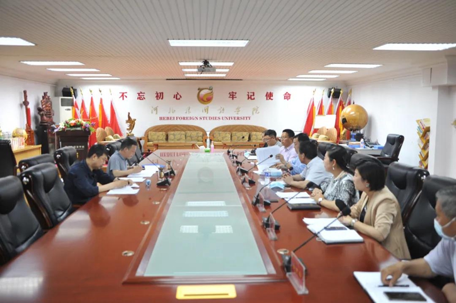 上午,思想政治理论课质量评估工作汇报会在专家教授楼四楼贵宾厅召开。河北外国语学院副董事长、执行校长习伟教授,党委书记朱爱教授、副校长朱红素教授、副书记李莉、副校长陈乐音、副校长王志强以及各处处长、各二级学院院长及思政课教师等出席会议。
