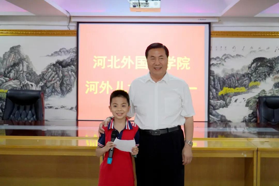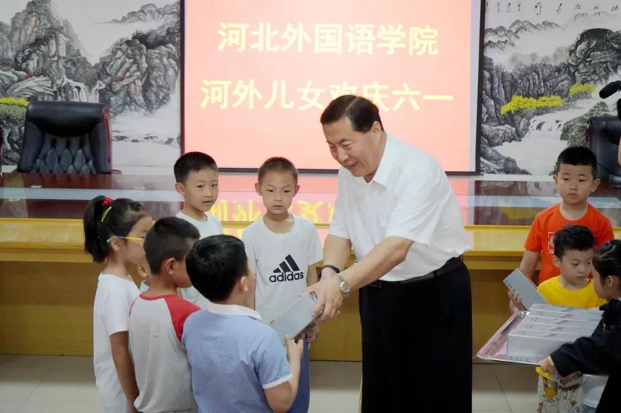 河北外国语学院是一所充满正能量、有着人文关怀、温暖、幸福如家的大学,细心的“大家长”——河北外国语学院董事长、校长孙建忠院士,自2015年6月1日起,每一年都为河外教师子女庆祝“儿童节”,并于2016年6月1日,正式设立了“河外儿女奖”,奖金为每月100元,让河外教师的孩子月月都有“儿童节”,充满快乐的成长。