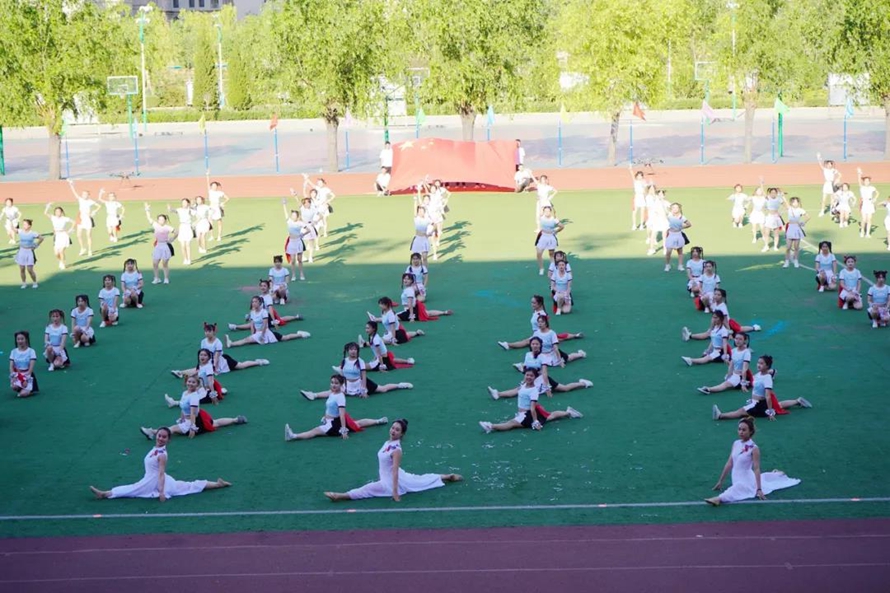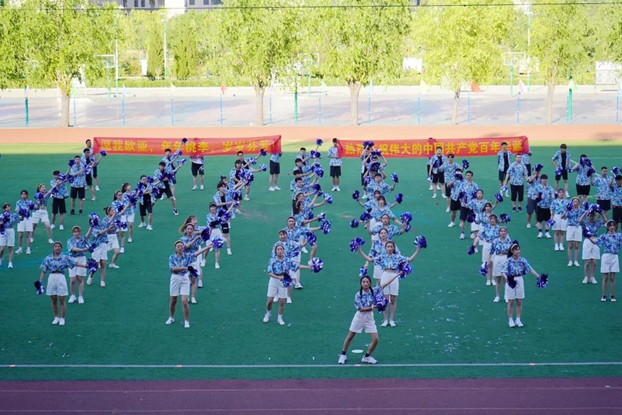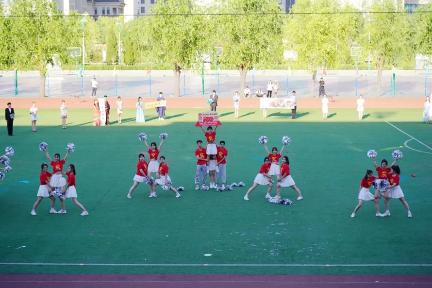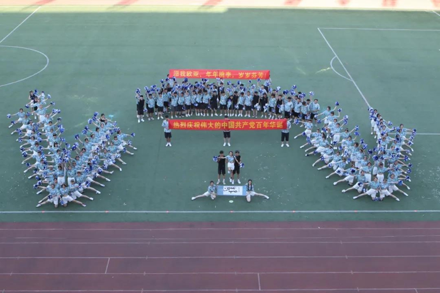 比赛场上,队员们一张张笑脸上洋溢着灿烂的微笑,多个学院的比赛队伍中出现了任课教师、外籍专家的身影。他们师生共舞,动作整齐划一,舞步热烈奔放。绿茵茵的操场上,他们舞动出花一样的海洋,赛出青春该有的朝气,赛出本有的高水平!全校师生欢聚一堂,灿烂的笑容和鲜艳的党旗一起绽放,大家载歌载舞,激情的舞蹈同欢庆的锣鼓一起奏响!
