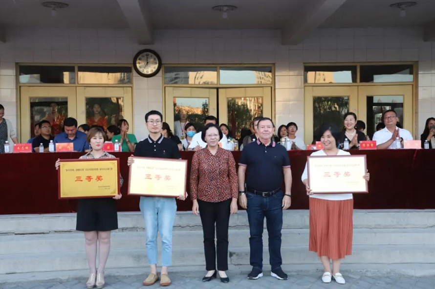 副校长朱红素教授,联合国教科文组织顾问、学校副校长、中国“一带一路”国家经济文化社会研究院外方院长佩雷斯院士为获得“三等奖”的学院颁奖