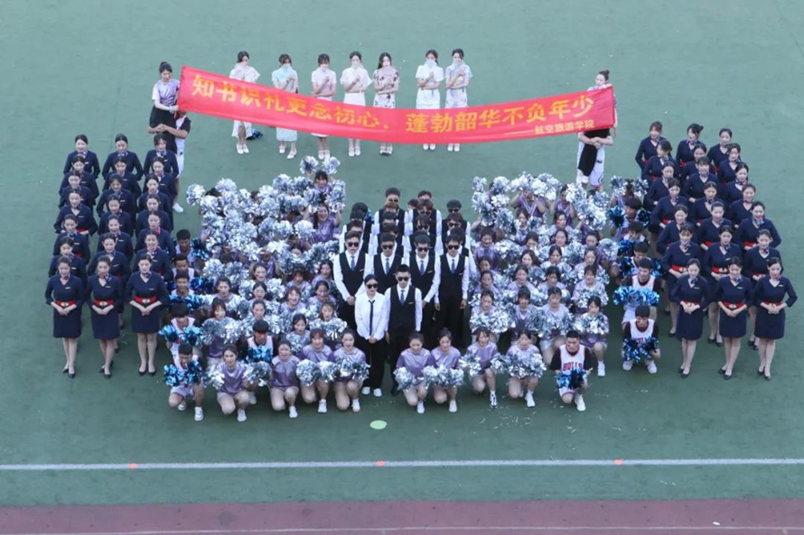 传媒学院发挥无人机专业优势,用无人机拉出“奋斗百年路 起舞新征程”的条幅。国际金融学院发挥专业优势,外籍专家身着国家特色服装,拿着算盘,为参赛代表队加油助威。航空旅游学院以旗袍秀、专业礼仪赢得在场观众阵阵掌声。