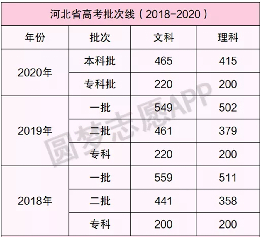 (2020年河北省文科本科提档线465分,理科提档线415分,仅供参考)