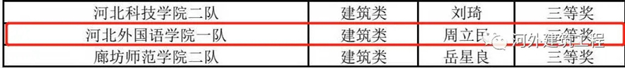 此次比赛共有来自30所高校的132支队伍660余名同学参加,河北外国语学院涉外建筑工程学院战绩如下: