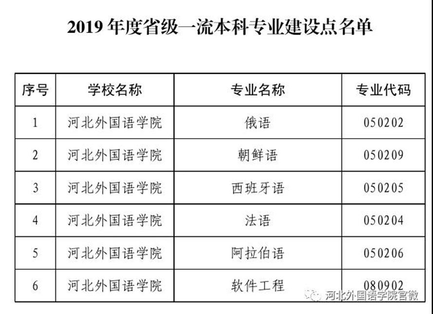 德语、葡萄牙语、日语、俄语、朝鲜语、西班牙语、法语、阿拉伯语均是河北省一流本科专业。