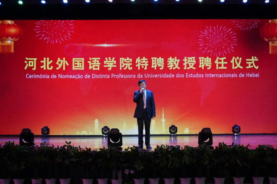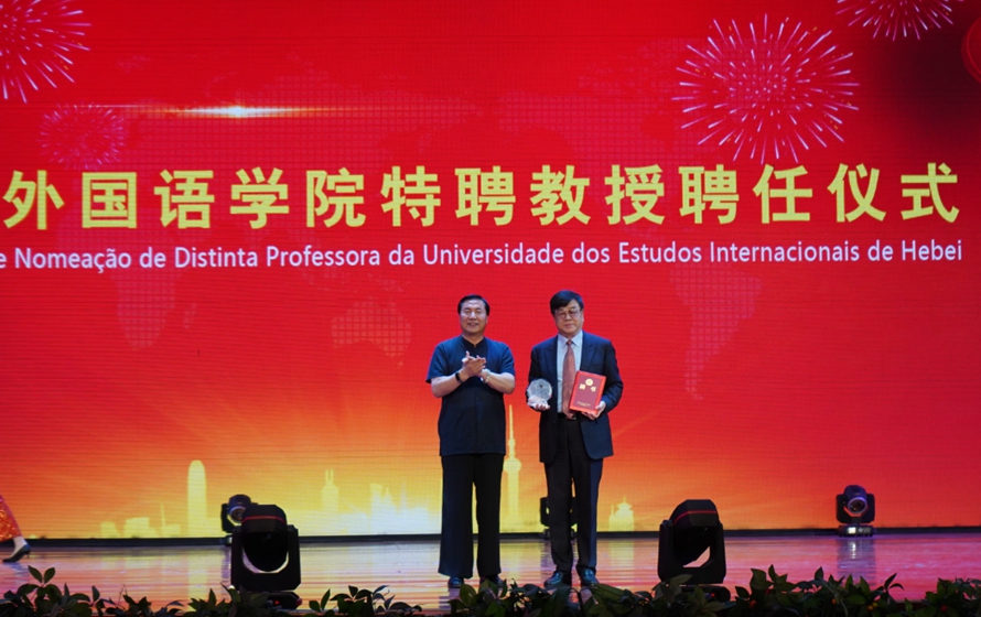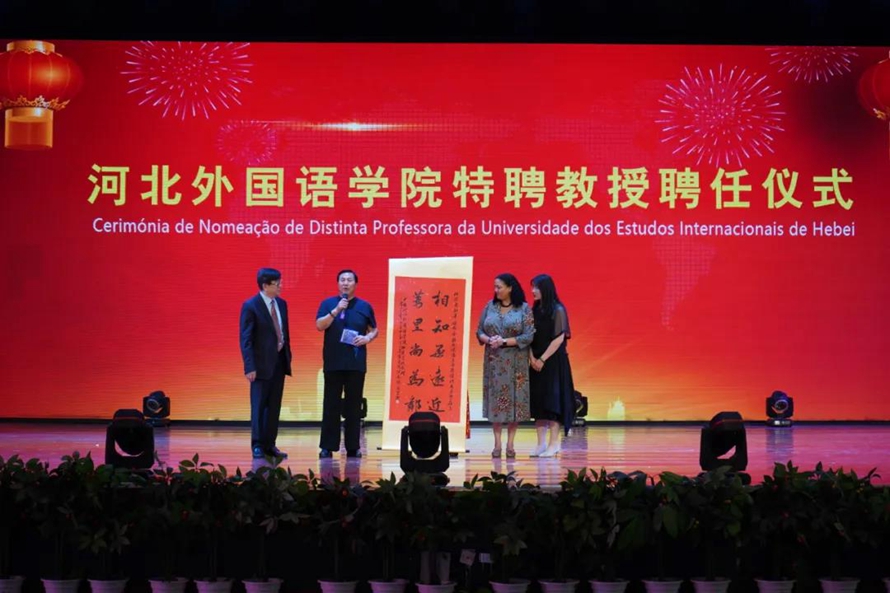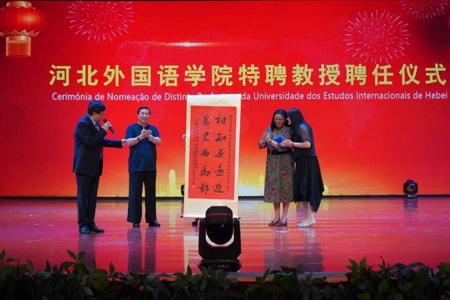 6月23日上午,在佛得角驻华特命全权大使塔尼亚·罗穆阿尔多女士和部分校领导、师生代表的见证下,河北外国语学院董事长、校长孙建忠教授亲自将特聘教授证书颁发给陈茂才教授,特聘他为河北外国语学院美术学院教授。