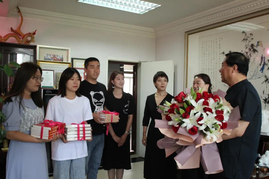 前来看望孙校长的是2017级俄语专业的李舒菡、李铁英和薛怡倩和阿拉伯语专业的李越四位同学。孙校长非常高兴,一一询问了四名同学在校期间的学习情况和现在的工作成绩,李舒菡、李越两位同学在校期间是欧亚语言学院学生会主席,他们非常自豪地对孙校长说“在学校的‘龙凤计划’中,我们的组织能力、干部能力、领导能力得到很大锻炼和提升,也让我们很快融入了校外实习工作岗位,并取得了不错的发展”。薛怡倩同学在校期间担任学院公寓建设部部长,精细、认真是她的工作态度,现在从事外贸工作的她,将每一项工作都做得井井有条;李铁英同学作为学院团总支副书记,代表毕业生为孙校长送上精心挑选的鲜花,她说“我们一定常回来看看。”