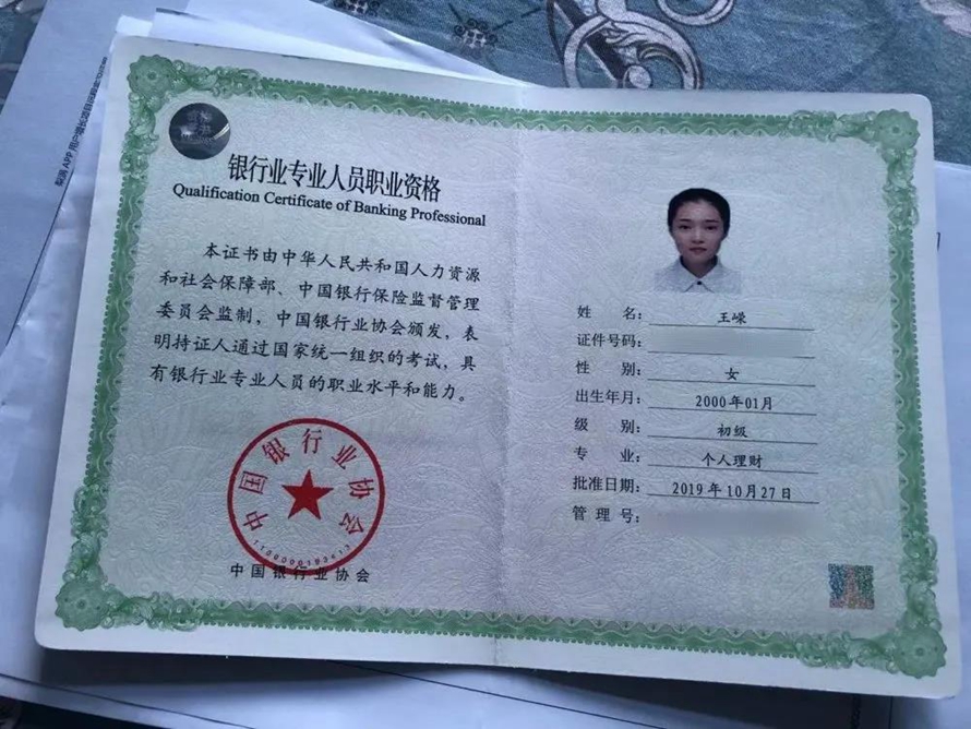 为了更好地提升自己的知识储备,为未来做好铺垫,王嵘在三年内考取了英语四级、英语六级、国际人才英语初级证书、BEC中级、计算机二级证书、驾驶证、高中英语教师资格证、银行从业资格证、证券从业资格证、CMA(美国注册管理会计师)、ACCA(特许公认会计师公会)过了11科(共13科)、FRM(金融风险管理师)过了一级(共二级)等十余个证书。