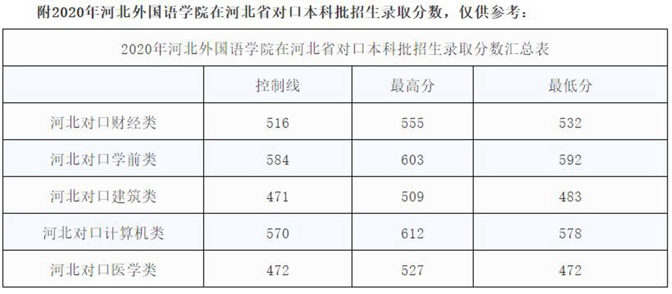 6月28日09时至7月02日17时,过对口本科批建档线考生,在河北省教育考试院网站“对口本科批”中第一志愿填报河北外国语学院,录取率更高。