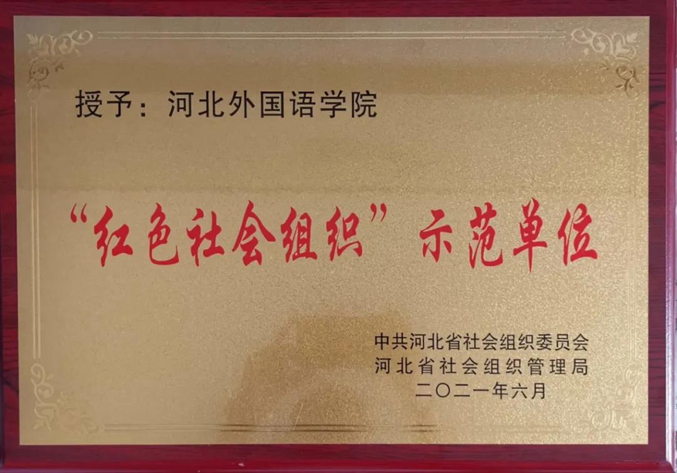 河北外国语学院将倍加珍惜此次荣誉,再接再厉,充分发挥“红色社会组织”示范作用,深入学习贯彻习近平新时代中国特色社会主义思想以及党的十九大和十九届二中、三中、四中、五中全会精神,紧紧围绕省委省政府中心工作,增强“四个意识”,坚定“四个自信”,做到“两个维护”,不忘初心,牢记使命,充分发挥党支部战斗堡垒作用,教育、管理、监督党员,组织、宣传、凝聚、服务群众,服务行业,为社会组织高质量发展,为河北教育事业高质量发展做出新的贡献!
