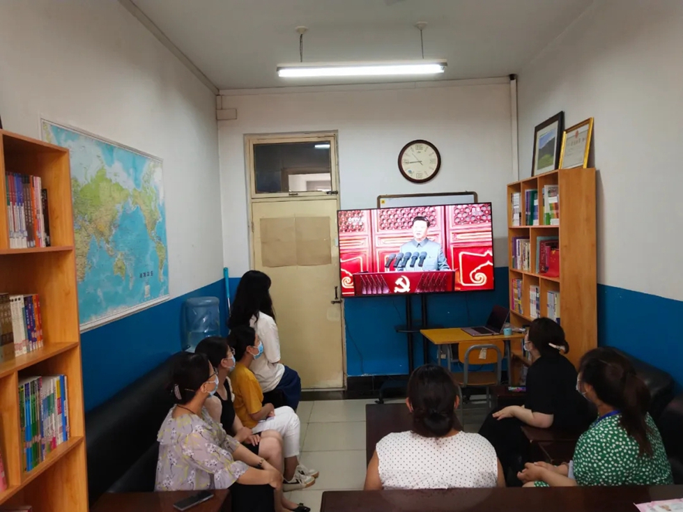河北外国语学院广大党员干部、师生员工在党团大教室、办公室、家中及返家途中等场所,以集中收看、个人收看等形式,怀着无比激动的心情收看了庆祝中国共产党成立100周年大会盛况。