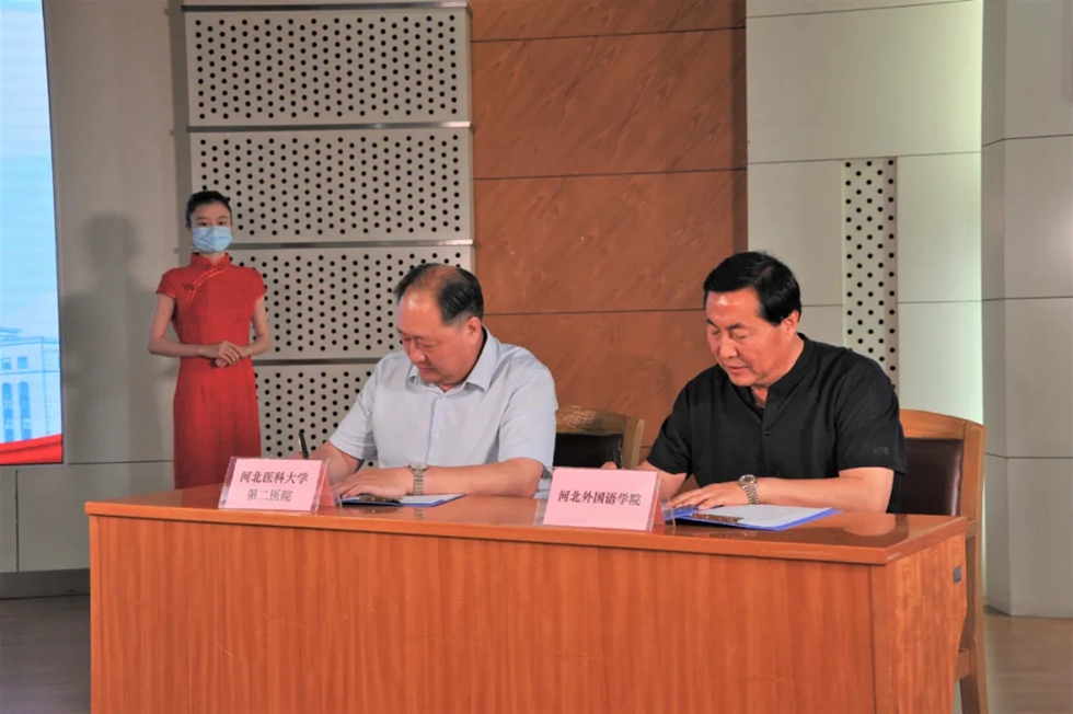 为了保障外国专家在就医时的顺畅沟通,妥善解决外国专家的后顾之忧,在河北省科学技术厅副厅长、省外国专家局局长郭玉明、河北医科大学第二医院党委书记张万生、省市级媒体记者等人的见证下,河北省医科大学第二医院院长时保军与河北外国语学院董事长、校长孙建忠签署“外国专家就医定点医院”翻译人才协议,河北外国语学院将为提供多种语言翻译人员做好服务保障。