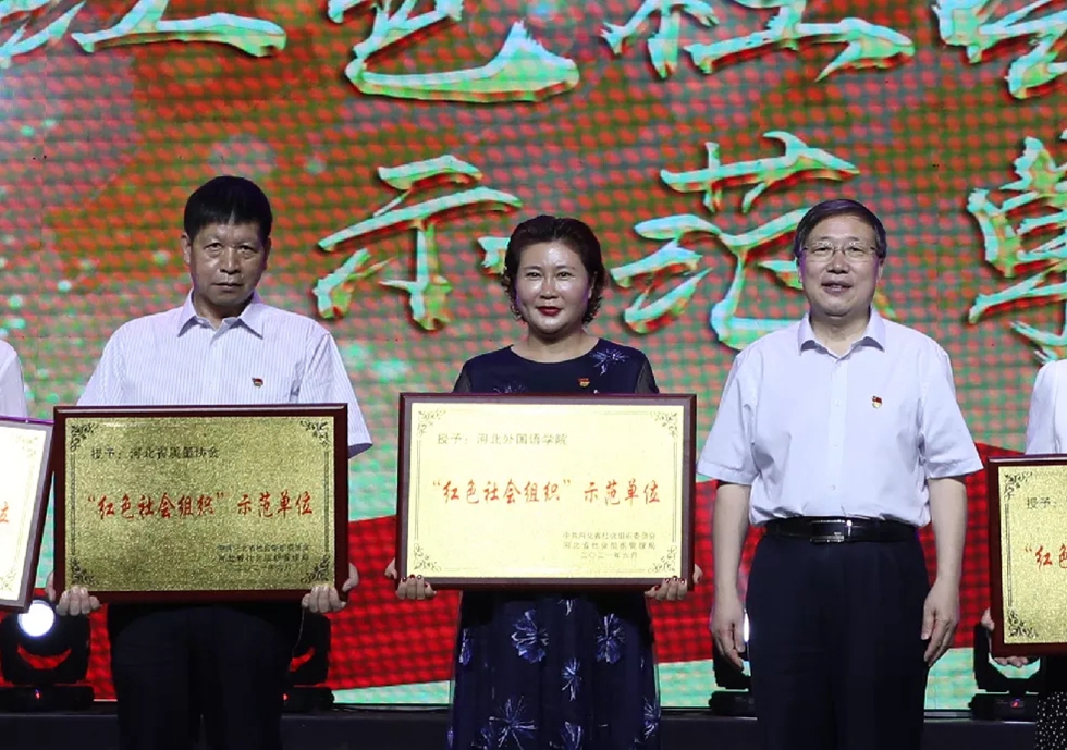2021年6月27日,河北省社会组织党委举办了“社会组织跟党走——庆祝中国共产党建党100周年”活动。同时,为“红色社会组织”示范单位授牌,河北外国语学院被授予“红色社会组织”示范单位荣誉称号。