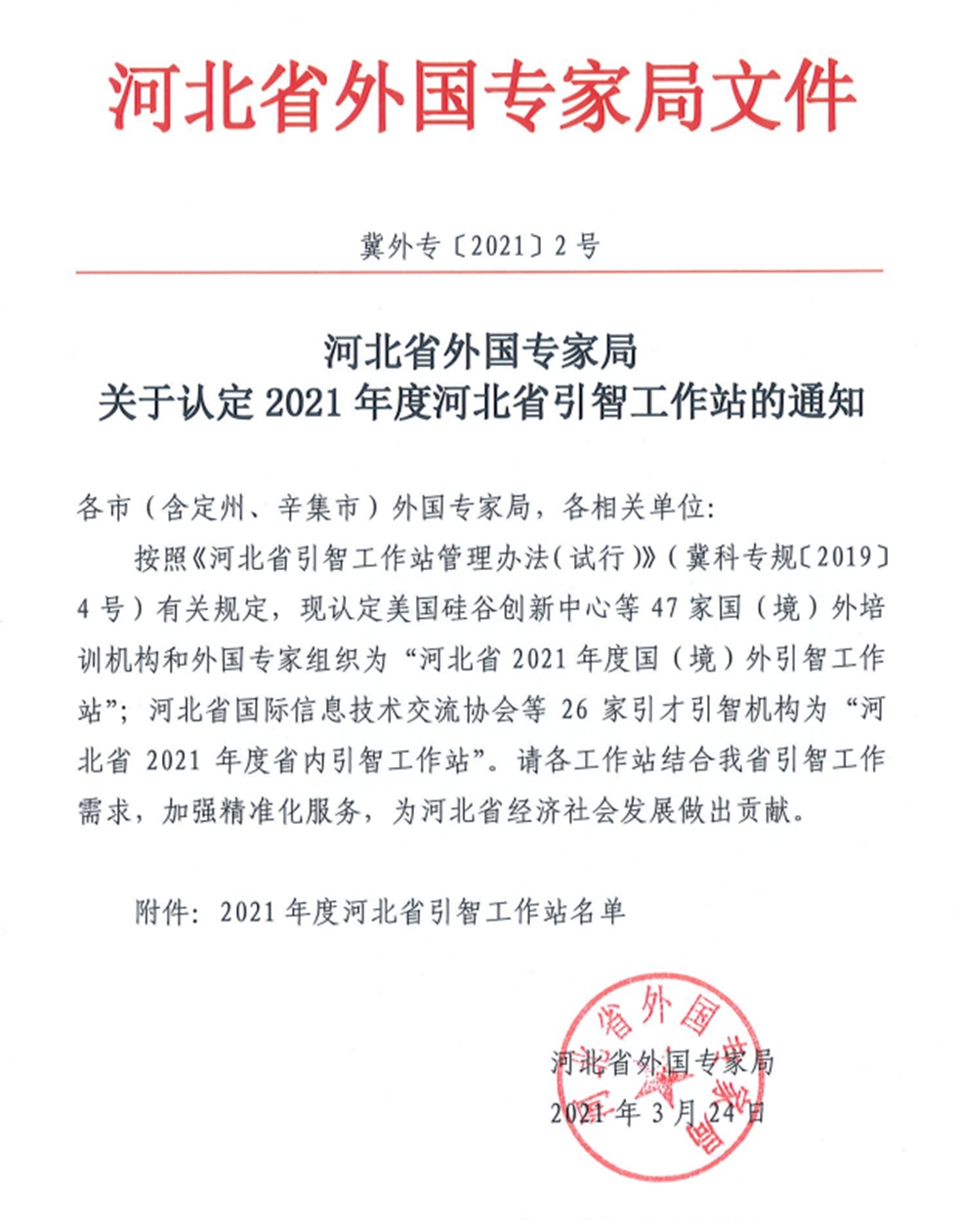 我校发起成立的河北省国际高端人才交流协会被认定为省级引智工作站