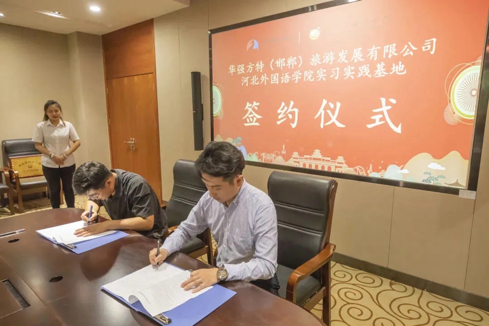 2021年7月6日,河北外国语学院与华强方特(邯郸)方特旅游发展有限公司校企合作签约授牌仪式在华强方特(邯郸)旅游发展有限公司成功举办。