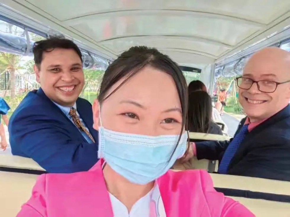 起初,大多数同学都是跟车信息协调员,司振娇也不例外。慢慢地大家都熟悉业务,可以作为讲解人员接受商务讲解与政务讲解。司振娇刚开始上的是商务讲解,就开始上政务讲解。司振娇曾接待过太平洋保险公司一行、中青旅、中花协一行、南南合作一行等。