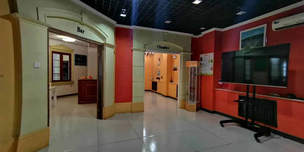 学校将外语学习的课堂式模式改为“情境式”,将课堂转到实训室进行,学生在语言情境实训室内学习餐厅文化、日常交际、体验异国场景,拉近自己与异国他乡的距离,为日后同学们出国减少障碍,同时也刺激同学们对外语学习热情,以达到提升口语交际能力与口语使用能力的目的。