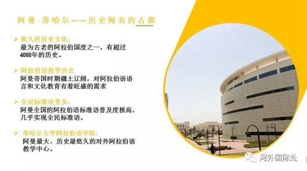 河北外国语学院阿拉伯语专业于2019年与阿曼苏哈尔大学开展合作,每年选派学生出国交流,2021年,在两校的共同努力下,双方进行了云端合作。