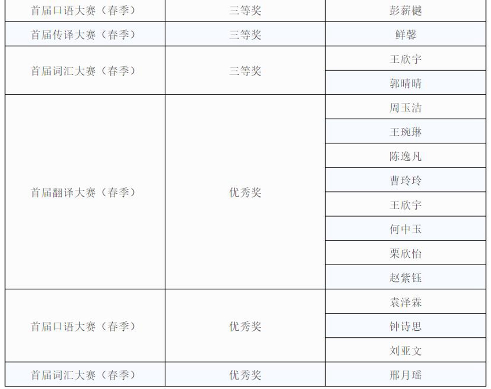 近日,首届CATIC杯全国翻译口语传译词汇大赛落幕,河北外国语学院学子积极参加,31名同学在传译、翻译、口语、词汇等比赛中脱颖而出、喜获佳绩,其中河外英语专业20级本科五班彭颖同学荣获翻译大赛季军。