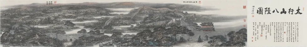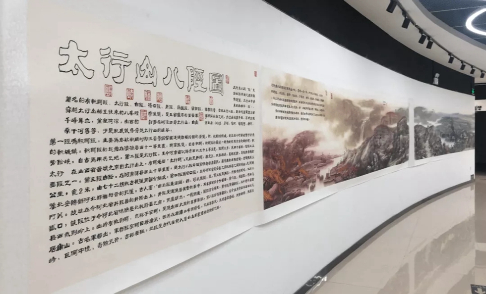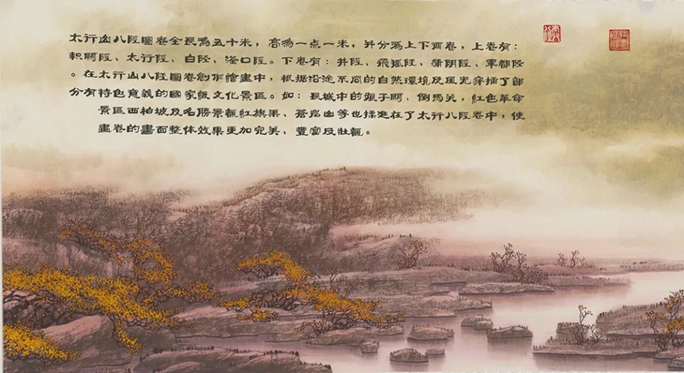 艺术家吴柳东创作的《太行山八陉图》用时一年之久,将800里雄伟壮丽的太行山风景浓缩于50米长卷上,体现了中华魂的宏伟壮观。