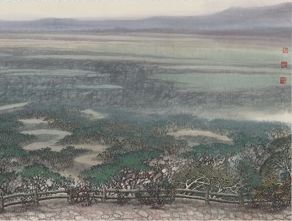 为了生动形象地表现大自然的山水,吴柳东一头钻进太行山腹地,当他走出深山的时候,将北方山岳险峻又不失壮美的质感、长松古树经风历雨的坚毅、飞泉流水日夜不息的灵动,犹如神助,跃然于纸上。