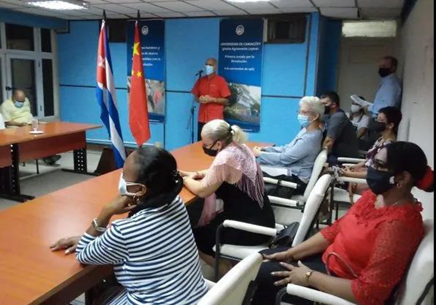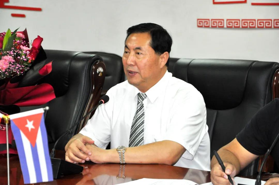 圣地亚哥·拉赫斯·乔伊校长首先转达了古巴高等教育部部长萨博利多博士对此次合作的支持与祝贺,同时对能在疫情这个极具挑战的时期,达成双方的深度合作表示非常激动。他表示,在正式的线上授课过程中,将亲自督导、检查每一堂课的上课情况,课程结束后亲自验收学生们的学习效果,保证课程教学的高质量,并坚信在双方的共同努力下,同学们一定能取得巨大的进步。最后祝愿中国和古巴万古长青的友谊万岁。