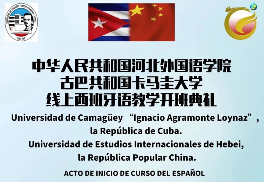 经过多次研讨与论证,河北外国语学院与卡马圭大学再度开启深度合作,共建线上西班牙语教学课程,2021年9月8日,双方代表于线上召开了开班仪式,共同庆祝疫情之下此次合作的成功达成。