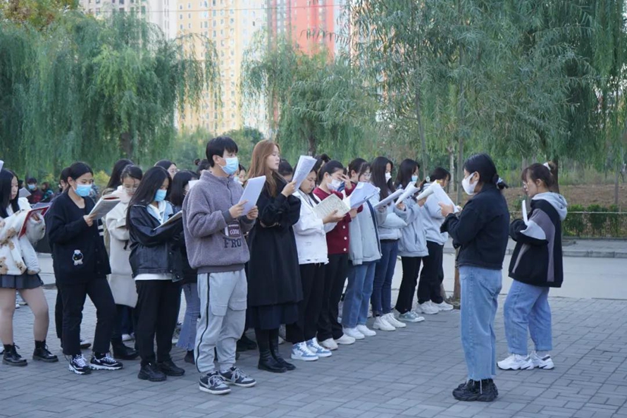 同学们以营、连、排、班为单位,或站成一排,或围成一圈,在西点教官的指导下,大声朗读单词、句子、文章,以反复的练习提高自己的专业技能与专业基本功,展现了同学们的蓬勃朝气和全新面貌。