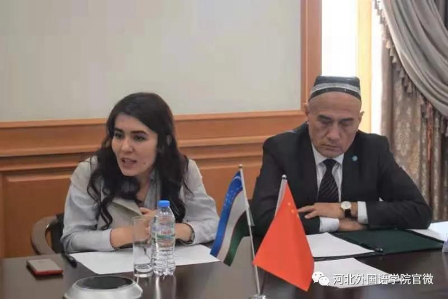 河北外国语学院坚持走全球化发展之路,是一所培养应用型、全球化、高素质专业人才的高校,是“河北省外国院士工作站”“河北省博士后创新实践基地”“博士后科研流动站”,与塔什干国立乌兹别克语语言文学大学大学有着共同的追求。希望双方发挥各自的优势,寻求更多的契合点,共叙友谊、共话合作、共谋发展。