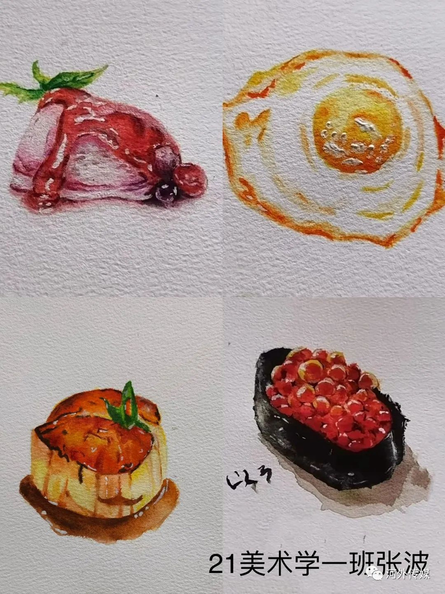 闭环管理期间,河北外国语学院美术专业学子在教师们的组织下,利用西点时间、晚自习时间,拿起手中的画笔,将心目中的美好画面付诸笔端,将美好的希望寄托其中,描绘出一幅幅精彩的生活画卷。