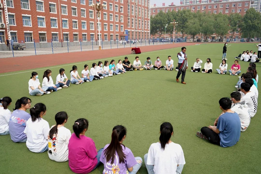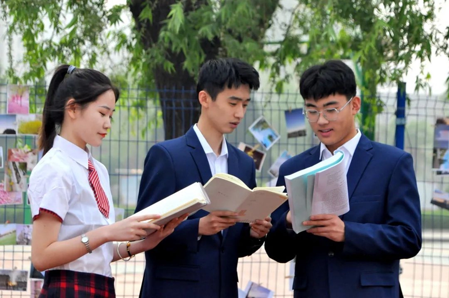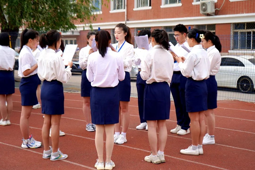 一阵阵读书声,打破这宁静,你看,整齐划一的队伍,西点教官的认真面容,大家学习的认真态度,无一不展现了河外风貌。你听,操场上,朗朗的读书声,让我们同学的声音尤为响亮,而我们的西点教官也并不简单,带着我们认真阅读!
