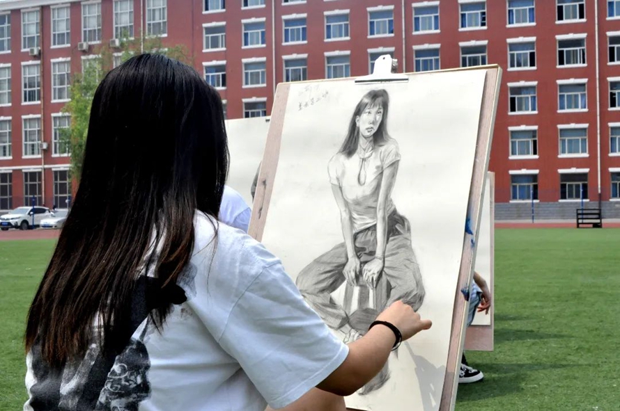 传媒学院美术专业和无人机专业在室外进行专业实践