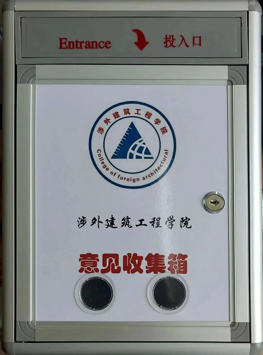 涉外建筑工程学院在五号教学楼二楼中厅公告栏旁设立了学生意见箱,同学们可以通过手写意见信投递到意见箱以及通过公众号下方进行私信等两种方式来发表自己的建议。