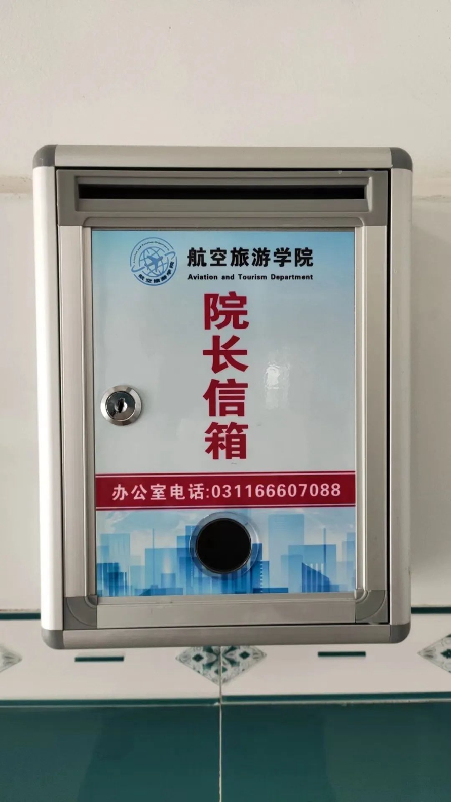 航空旅游学院在七号教学楼一楼中厅安装了院长信箱,并添加办公室电话,直接接收师生对学院的反馈意见。